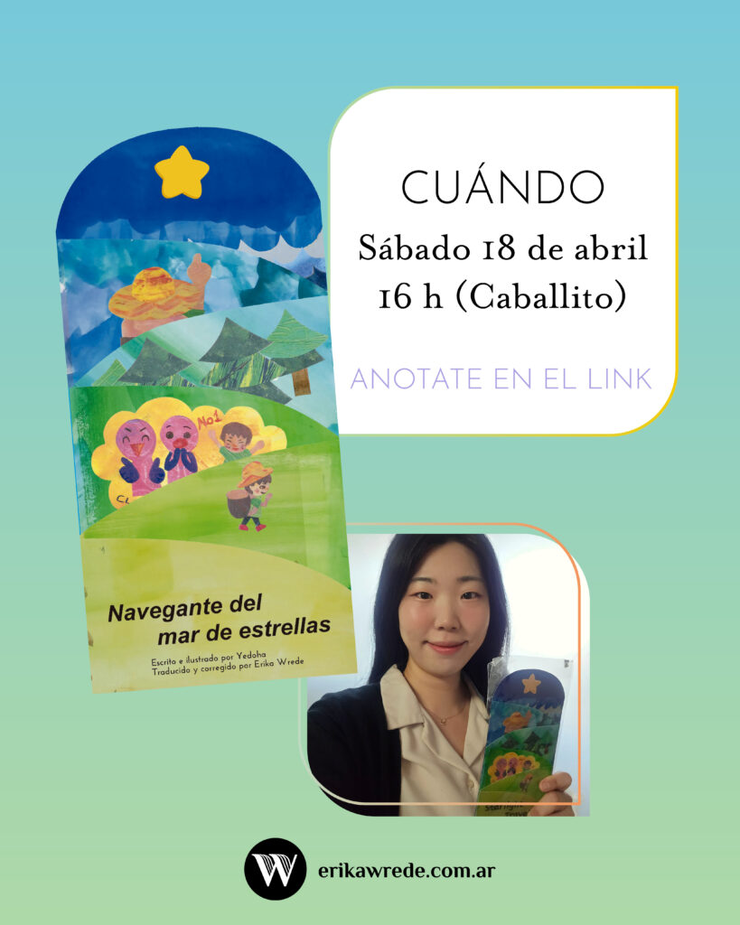 Yedoha es traductora, intérprete, escritora, poeta y artista. Juntas, tradujimos Starlight Traveler en una bellísima edición bilingüe coreano/español: Navegante del mar de estrellas. ¡Van a poder conseguirla en la Feria del Libro y en mi tienda!