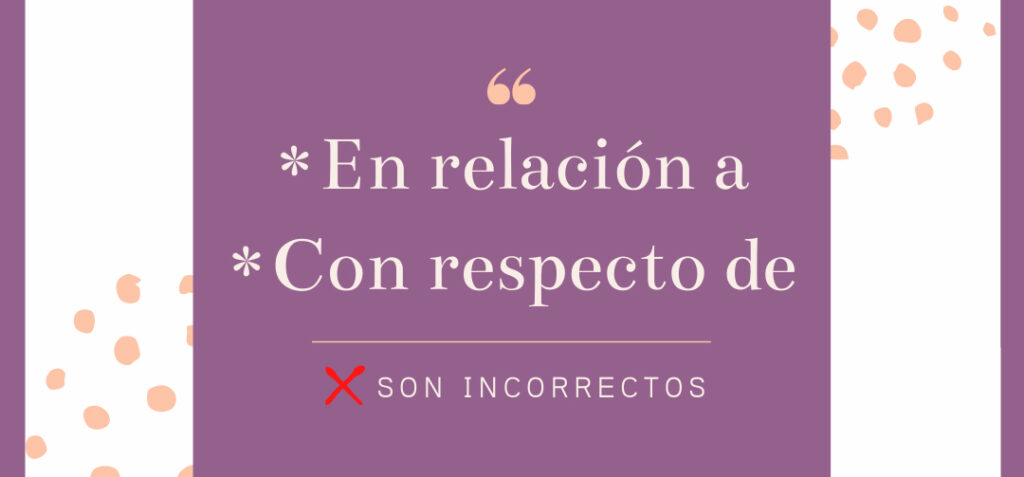 Las expresiones «con respecto a», «con relación a» y «en relación con» son correctas y pueden utilizarse en oraciones como: