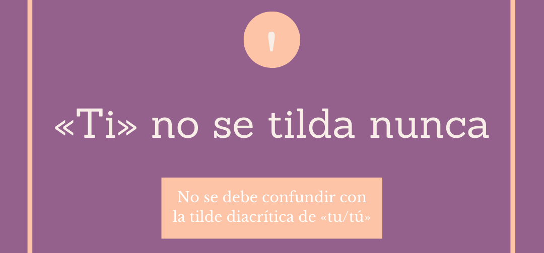 «Ti» es un monosílabo, por lo tanto no se tilda (como hui, guion, fui, etcétera). No se tiene que confundir este monosílabo con los casos en que hay tildes diacríticas para diferenciar significados. En esos casos se distinguen los átonos (te, se, de) y los tónicos (té, sé, dé).